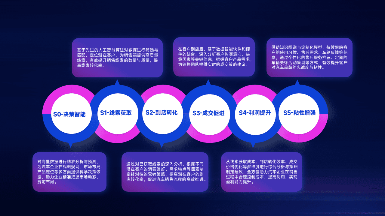 通过拓宽潜在客户来源、、、、优化线索分配并提高到店转化率,,以增强销售效率。。。。同时,,利用线索数据不断优化分析模型,,,,有效提升转化率,,,扩大营销影响力。。